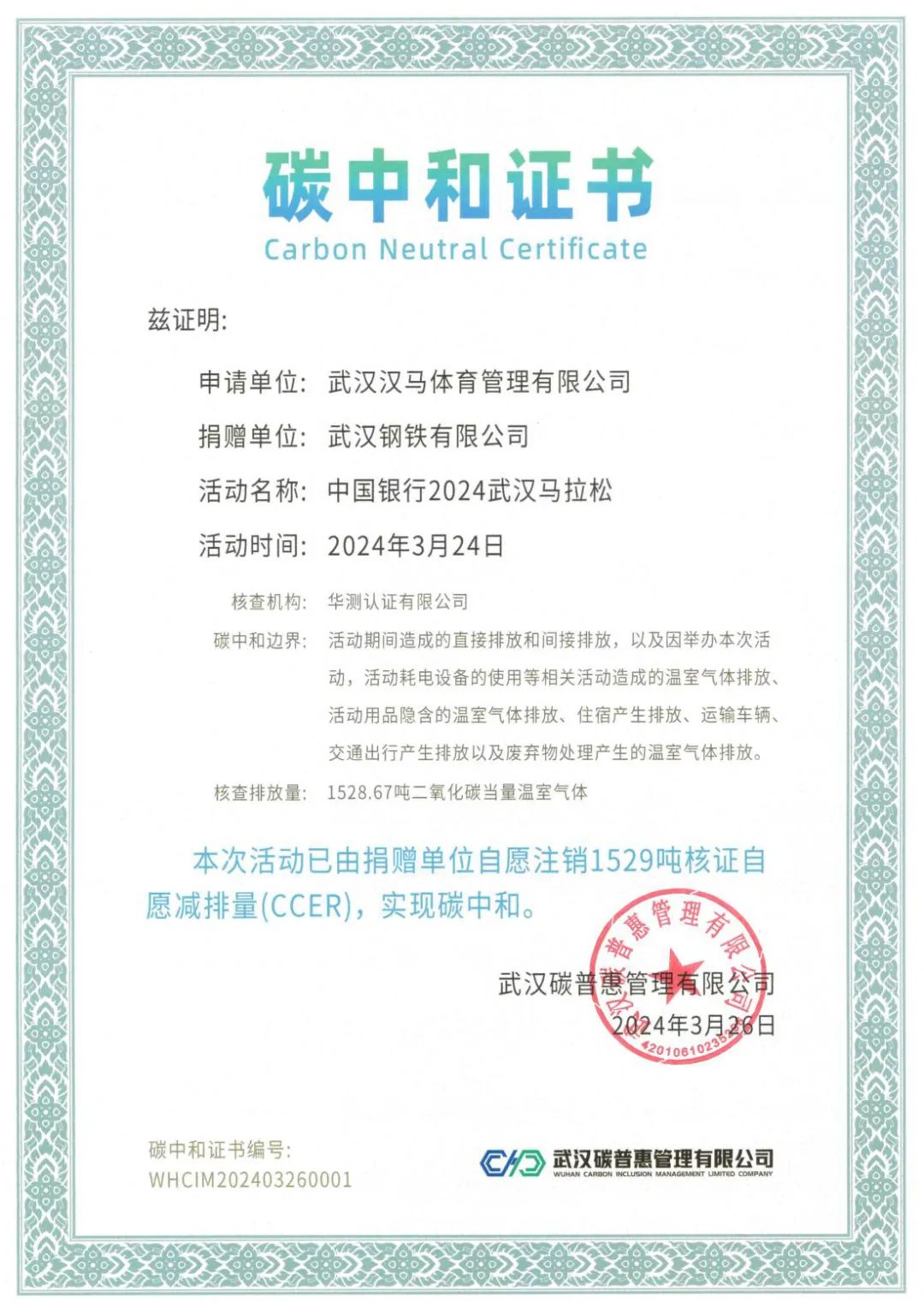 中國(guó)銀(yín)行(xíng)2024武漢馬拉松實現(xiàn)碳中和(hé),綠(lǜ)色賽事(shì)引領零碳風(fēng)尚